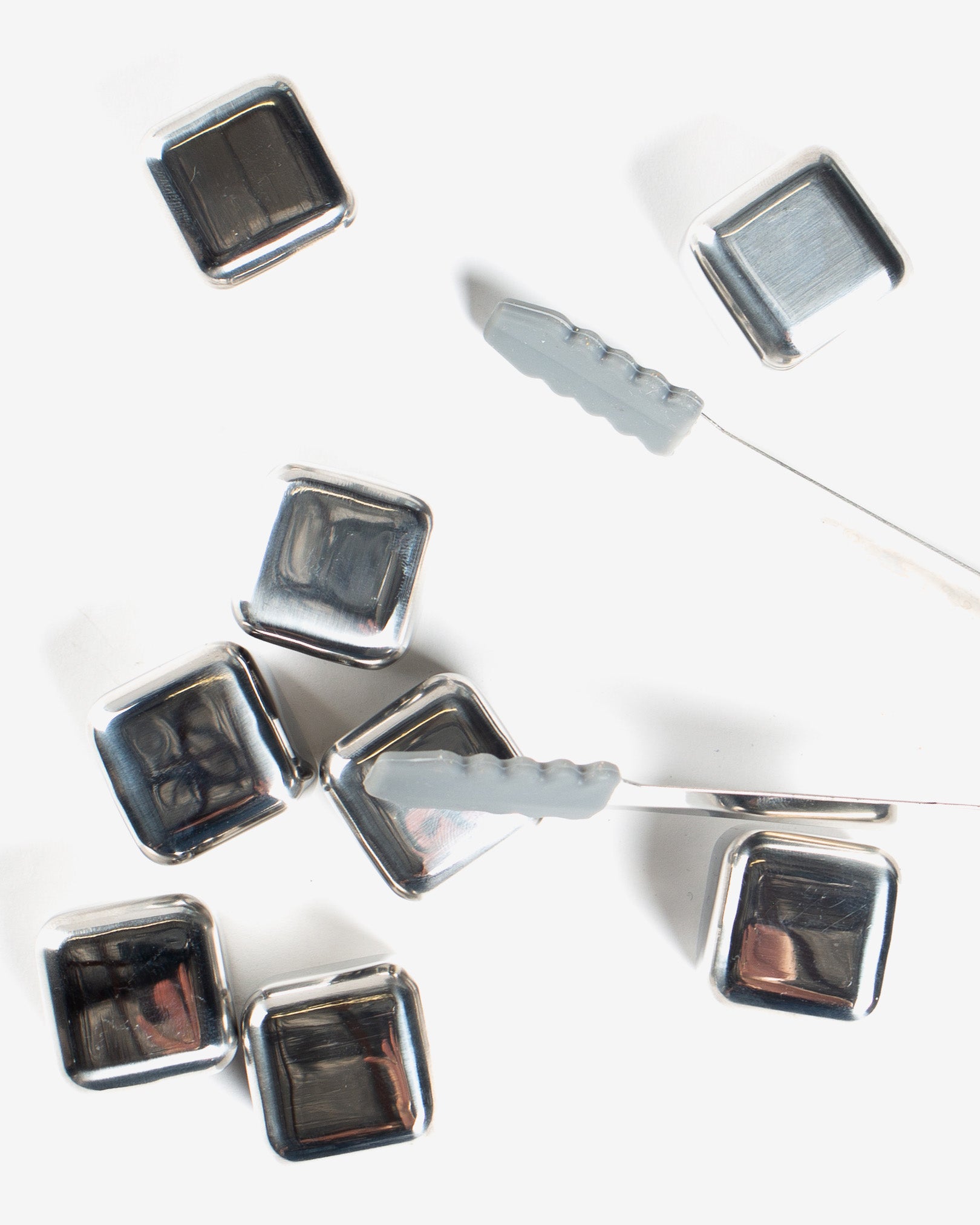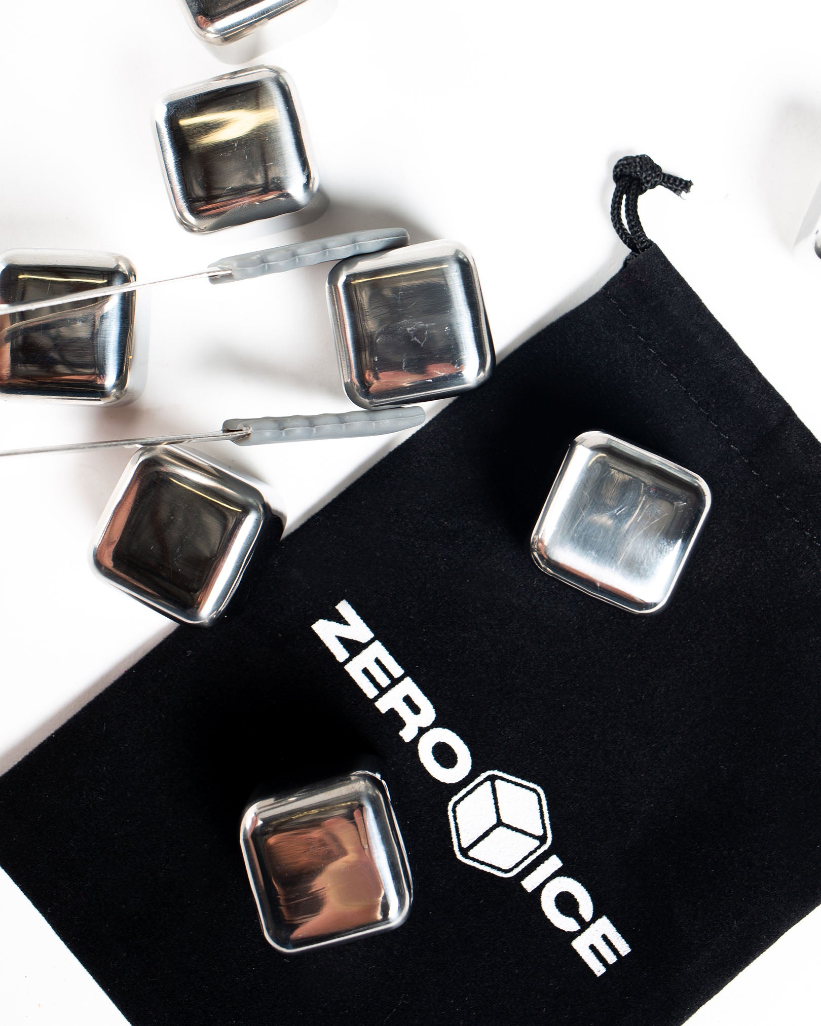 Zero Ice Reusable Stainless Steel Cubes (8‑pack) + Tongs
